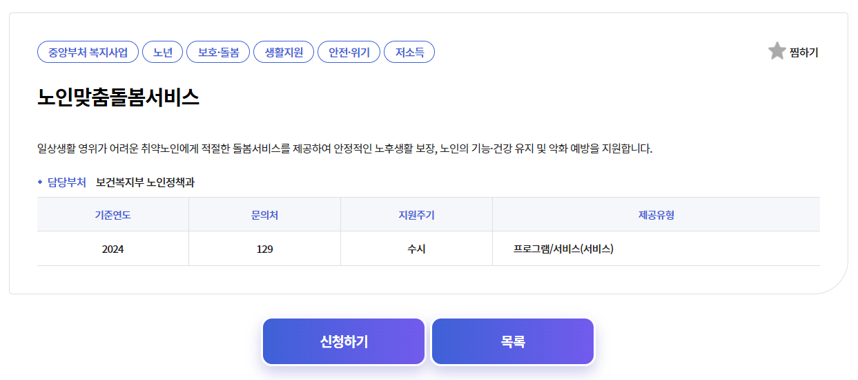 - '노인맞춤 돌봄 서비스' 메뉴를 찾아 클릭합니다.